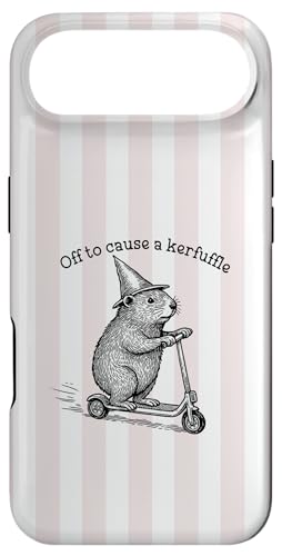 Off to Cause a Kerfuffle Capybara Scooter Pink Striped Case for iPhone 17