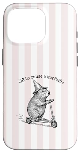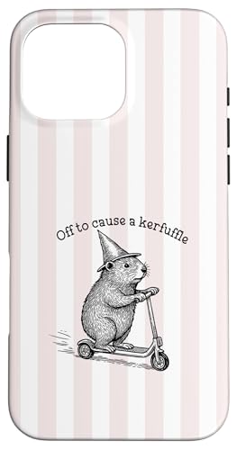 Off to Cause a Kerfuffle Capybara Scooter Pink Striped Case for iPhone 16 Pro
