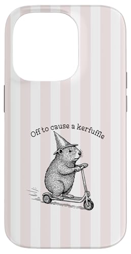 Off to Cause a Kerfuffle Capybara Scooter Pink Striped Case for iPhone 14 Pro