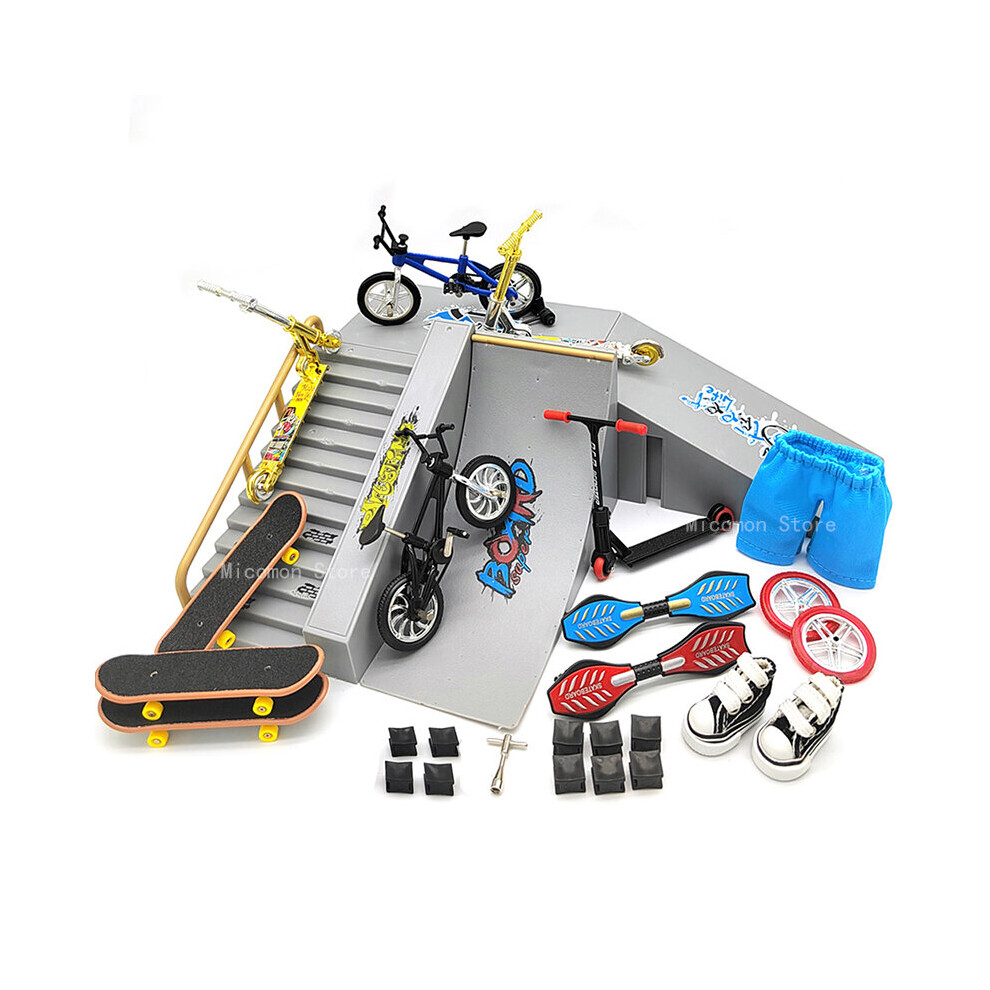 Finger Boards Set - Skateboard and Scooter Ramp Set, Accessories | Interactive Toys with Shoes, Trousers and Alloy Tools, Motion Set D