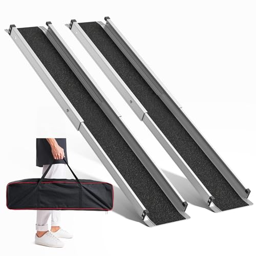 FACHNUO Telescopic Wheelchair Ramps 4FT- Heavy-Duty 600LBS Capacity Aluminum Mobility Scooter Ramp with Carrying Bag, Portable Foldable Design for Home Steps/Wheelchairs/Motorcycles, 2 Pack