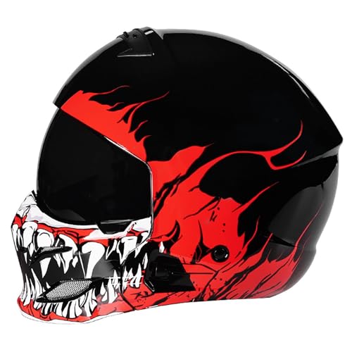 Caimcie Full Face Combo Scorpion Motorcycle Helmets Four Seasons Universal Electric Bike Indian Warrior Helmet DOT/ECE Certification D,XXL=63-64cm