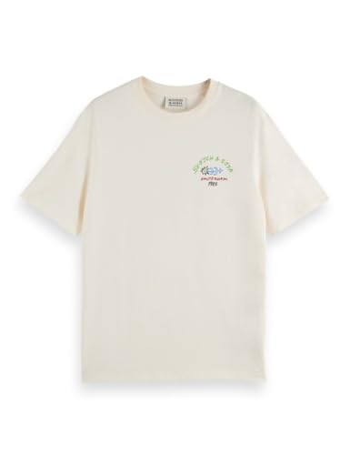 Scotch & Soda Mens Regular-fit Front and Back Artwork T-Shirt, Eggnog 100, XL UK