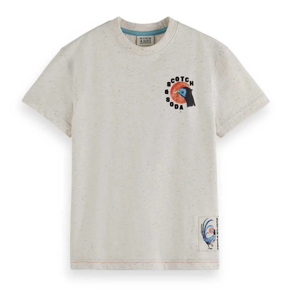 Scotch & Soda Mens Regular-fit Front and Back Artwork T-Shirt, Eggnog 100, S UK