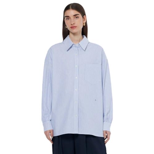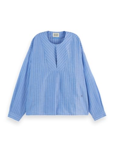 Scotch & Soda Women's Cotton Linen bib Shirt, Blue and White Pin Stripe, 10