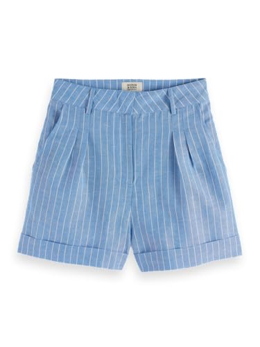 Scotch & Soda Women's Printed Linen High-Rise Shorts, Blue and White Pin Stripe, XL