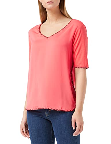 Scotch & Soda Women's V-Neck Tee with Woven Front Panel and Bindings T-Shirt, Pink (Watermelon 1906), Medium
