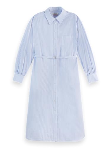 Scotch & Soda Women's CORE Poplin Shirt Dress Casual, White and Blue Stripe, 12