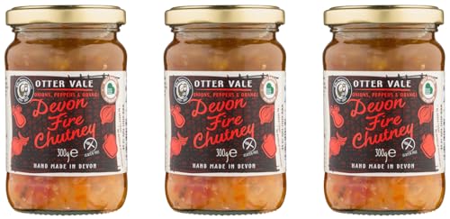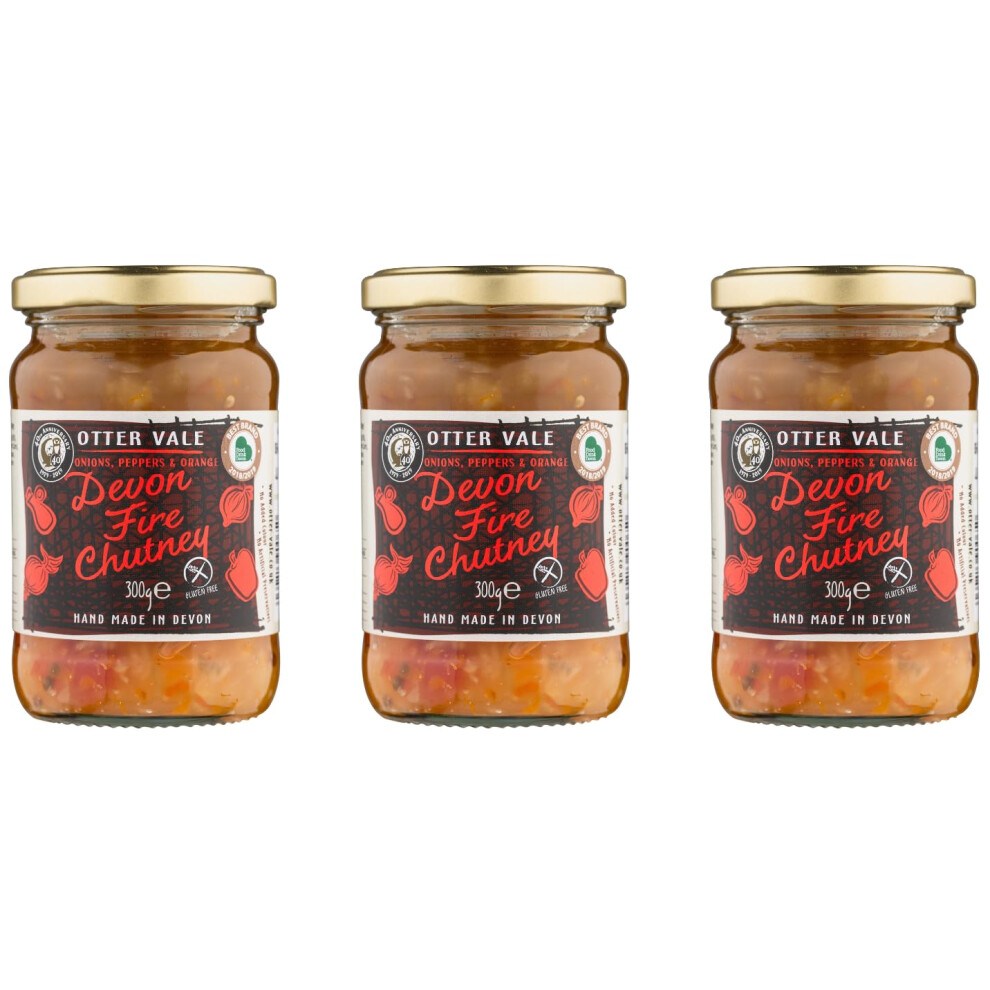Otter Vale - Devon Fire Chutney, Scotch Bonnet chilli heat with a hint of tangy fruit, hand-made in Devon, gluten-free, 300g glass jar x 3