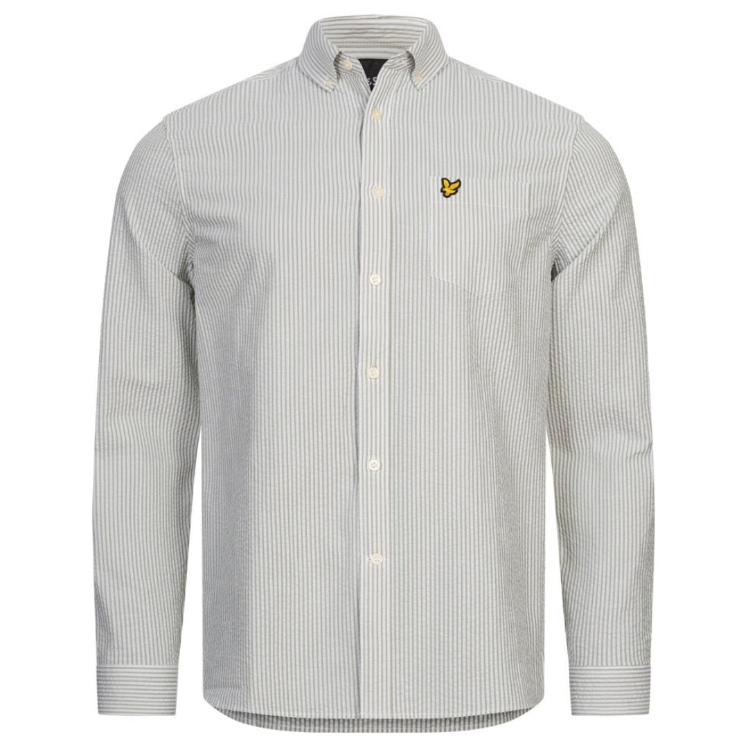 Lyle & Scott Mens Seersucker Strike Long Sleeve Green Shirt Cotton - Size Medium