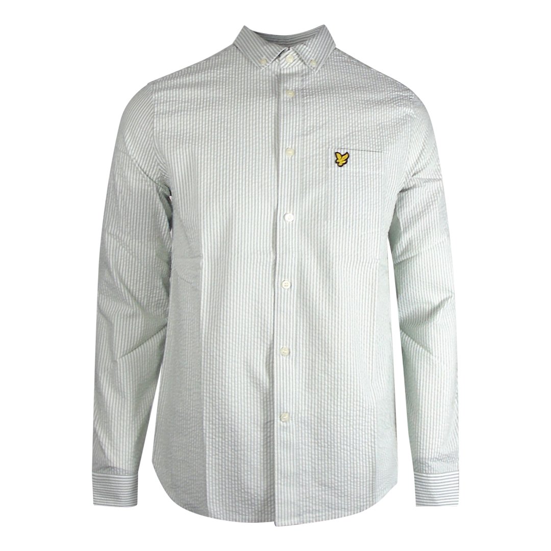Lyle & Scott Mens Seersucker Strike Long Sleeve Green Shirt Cotton - Size Large