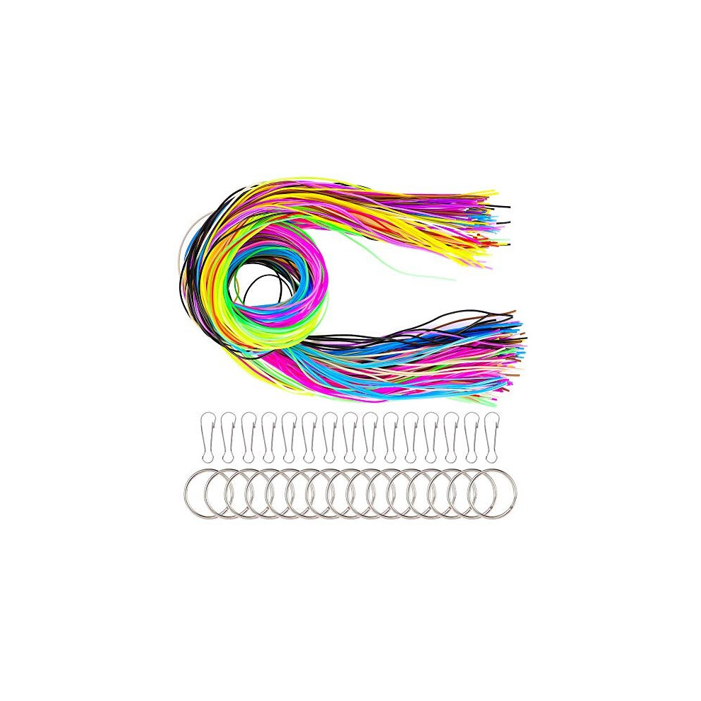 OTOTEC 200pcs Plastic Lacing Cord String Scoubidou Strings 1m Length with Snap Clip Hooks and Keychain Ring for Making Bracelets