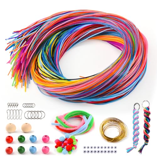 295 PCS Scoobies Strings Kit, Scoubidou Strings, Plastic Lacing Cord Gimp String Lanyard String Bracelets String Boondoggle Weaving Kit for Jewelry Making, Keychain Crafts, Lanyards and Bracelet