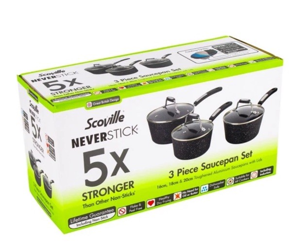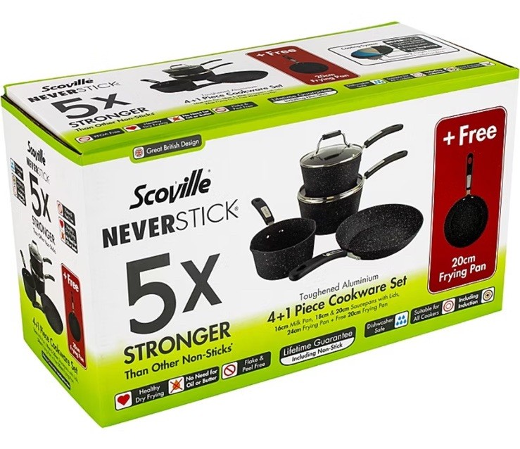 Scoville Neverstick 4+1 Piece Cookware Set Free Delivery Great Christmas Gift
