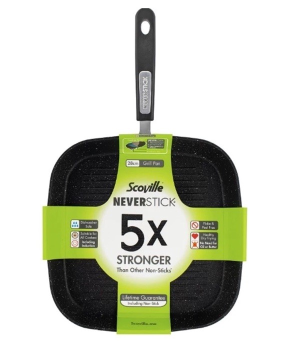 Scoville Neverstick 5x Stronger 28 cms Non Stick Grill Pan All Hobs + Induction