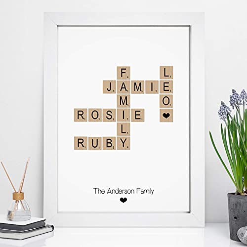 Personalised Scrabble Family Print - Birthday, Christmas Picture Wall Art Present Idea - Dad, Daddy, Grandad, Nanny Gifts - A5, A4, A3 Print & Framed