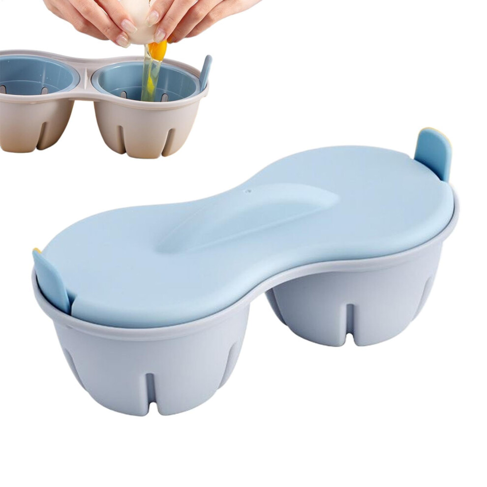 2-Cavity Egg Cooker Blue With Lid For Boiled Poached And Scrambled Eggs Rapid Cooking Appliance