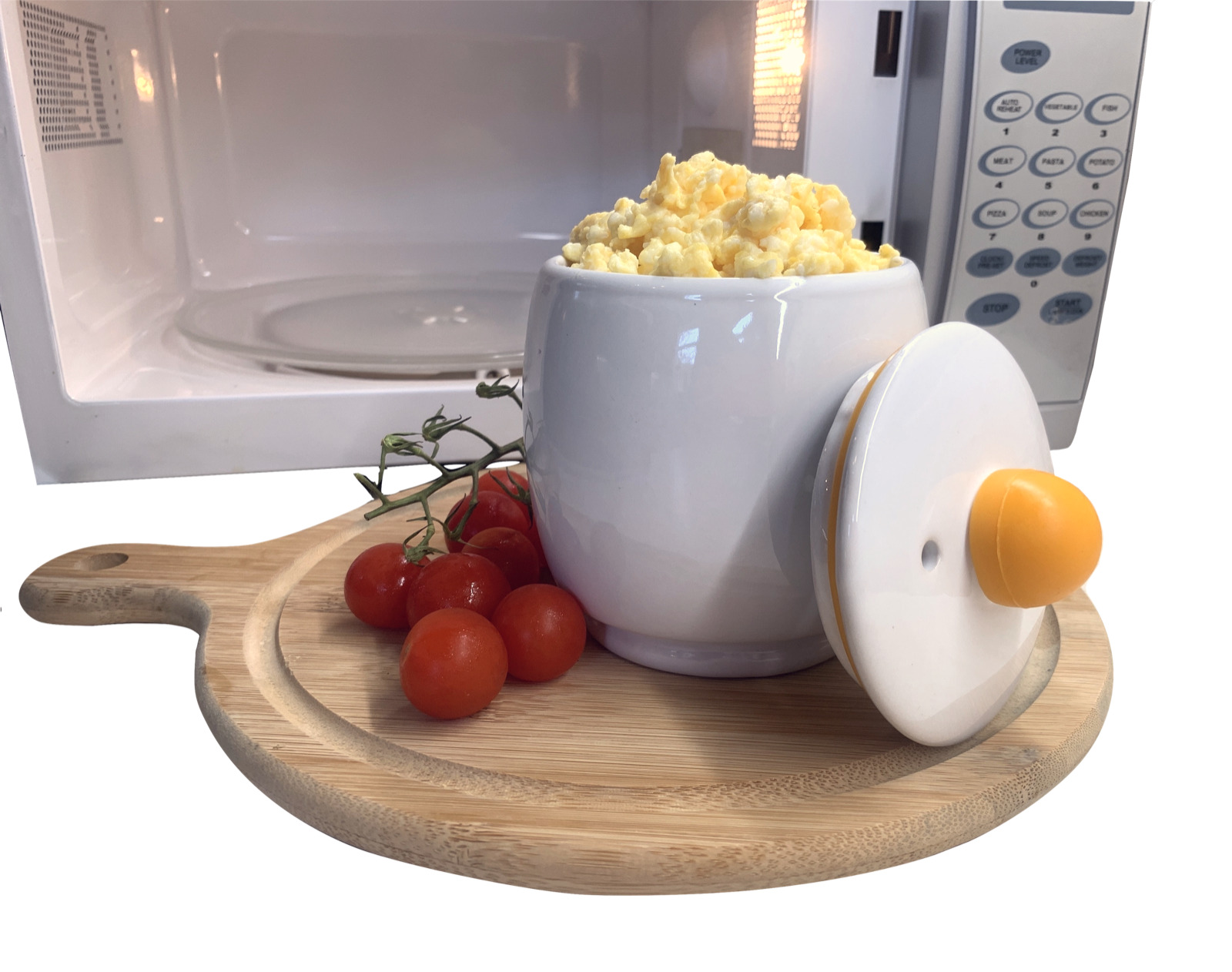 Microwave Egg Poacher Cooker- Perfect Scrambled and Poached Eggs - White Ceramic
