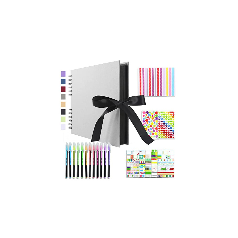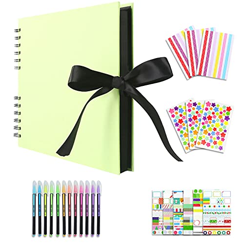 DazSpirit Photo Album Scrapbook - 80 Page DIY Memory Book with 12 Metallic Pens & 8 Photo Stickers, Holds 420 Photos - Scrapbook Kit, Perfect for Writing, Drawing, and Storing Memories(Black)