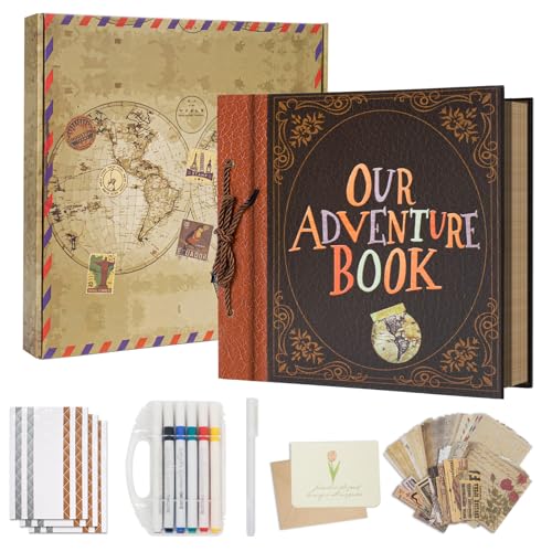 Remowith Scrapbook Kit, 23x18cm DIY Photo Album Supplies Hardcover Kraft Paper with 20 Sheets 40 Khaki Pages, Creative Craft Gift for Anniversary, Travel, Valentines Gift for Couples