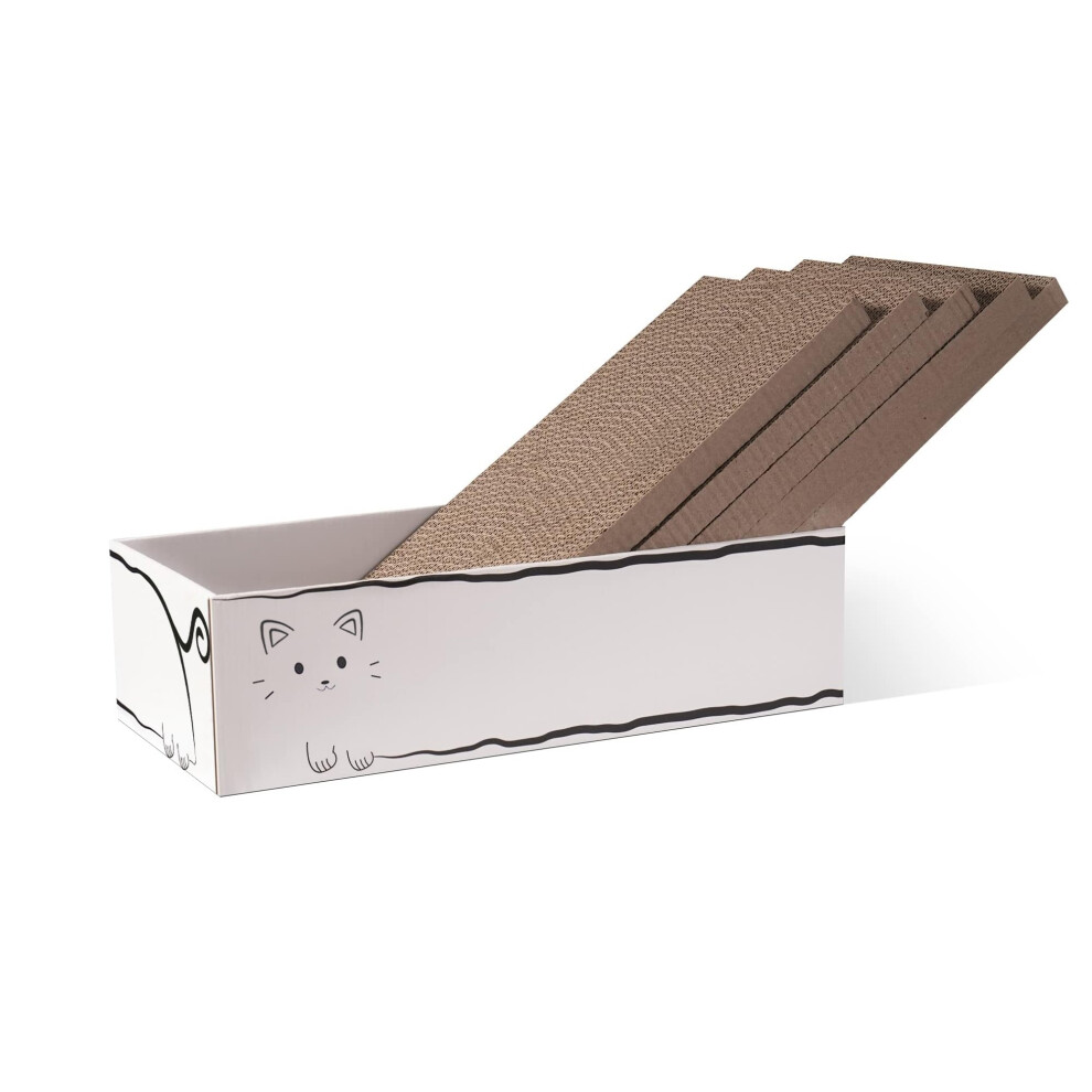 Cardboard Scratcher Pad Scratching Post, 5-Pack Cat Scratcher with Box, Durable Scratch Cardboard Refill Lounge Bed for Indoor Cats (33*24*11 CM)