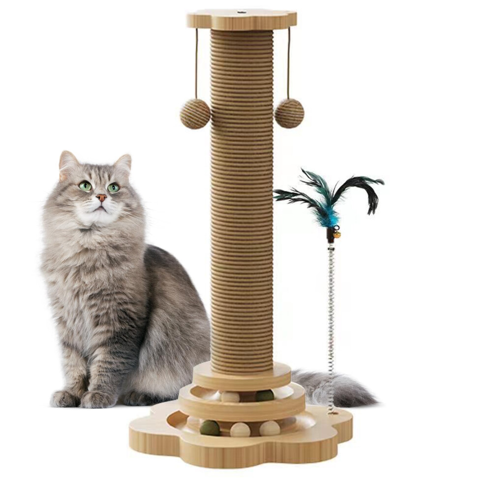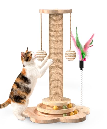 Xeticey Cat Scratching Post for Indoor Cats Scratcher Multifunctional Sturdy with Scratcher Post, Funny Cats Scratch Pole, Solid Wooden Base, Interactive Track Kitten Cat Scratch Post (28*46cm Tall)