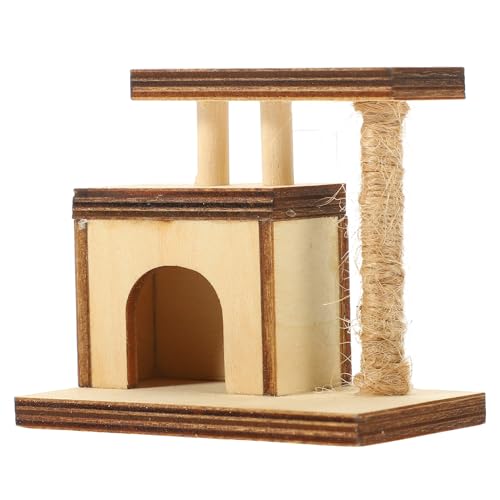 iplusmile 12 Scale Mini Wooden Cat Tree Furniture Model for Dollhouse, Doll House Layout Prop with Scratching Post, Miniature Wood Cat Tree for Dolls Accessories
