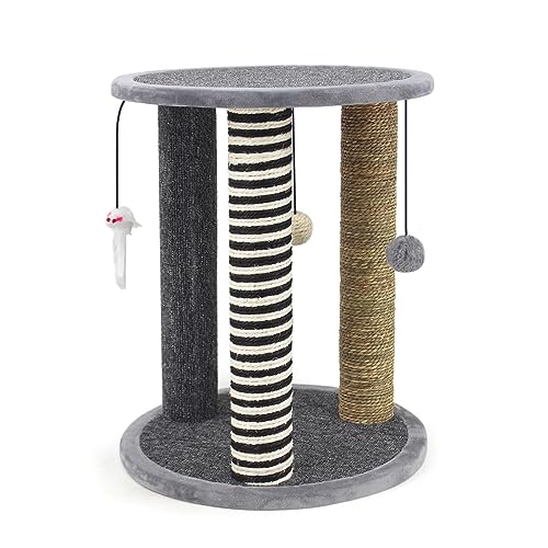 SONGWAY Cat Scratching Post Tree - Cat Tree with 3 Scratching Poles and Dangling Balls, Carpeted Base and Perch, Interactive Scratcher Toy for Indoor Cats Kittens, Grey