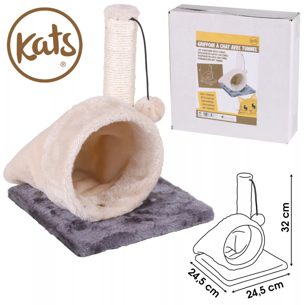 (Cat Scratching Post With Tunnel) Cat Tree Scratching Post Kitten Scratcher Pole Bed Toy Climbing Activity Centre