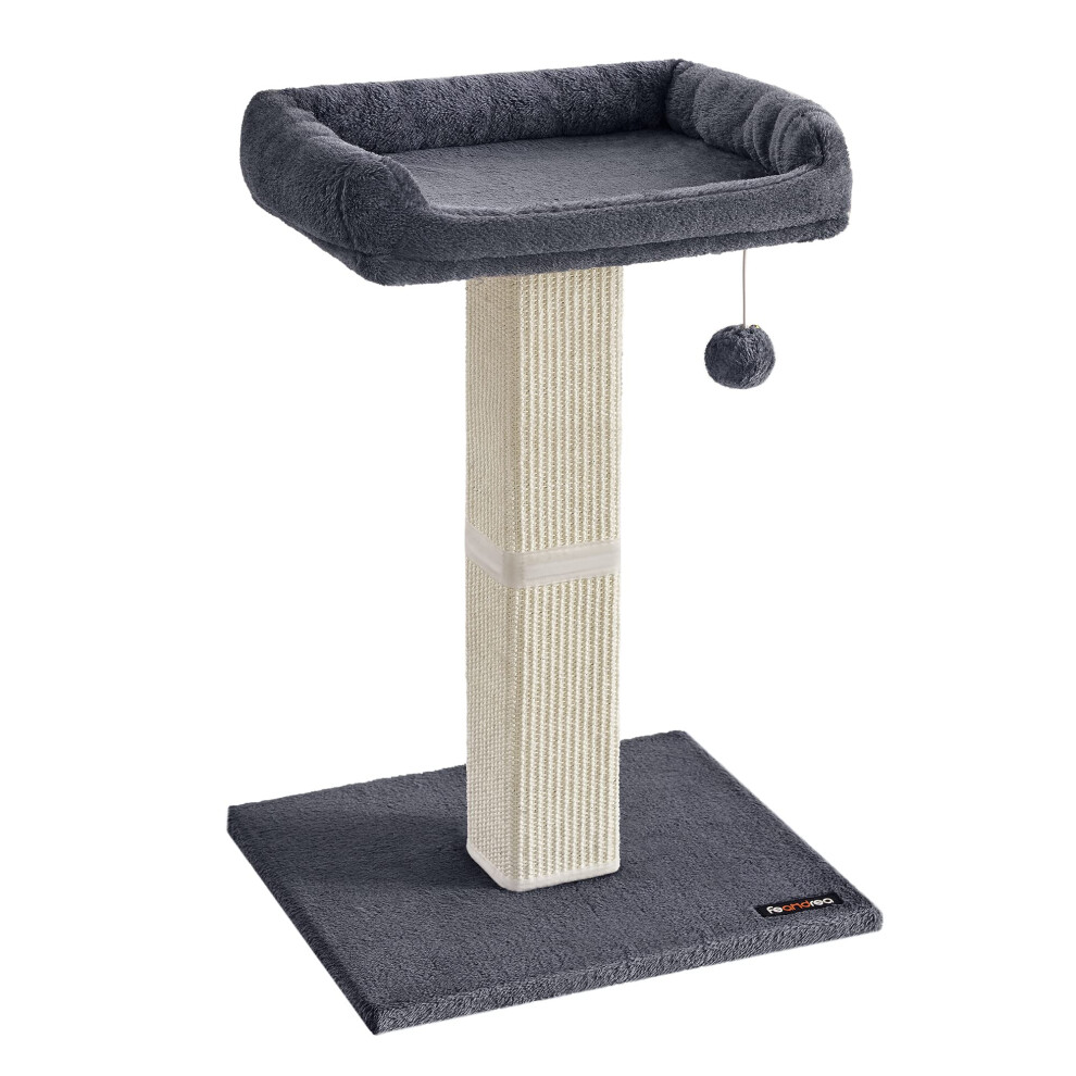 Cat Scratching Post, Cat Scratcher with 40 x 30 cm Plush Perch, Cat Tree, 71 cm Tall Scratch Post with Woven Sisal, 45 x 40 cm Base, Pompom, Dark Grey