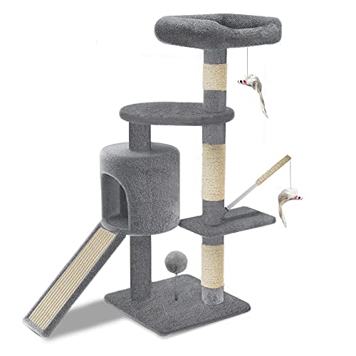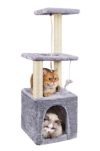 VOUNOT Cat Tree Tower, Cat Condo with Sisal Scratching Post, Multi Level Cat Climbing Frame Indoors, Cat Activity Tree, Grey, XL
