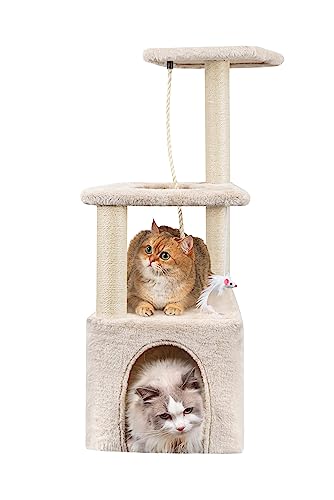 Cat Scratching Post, 90cm Cat Tree for Indoor Cats Multi-Level Stable Cat Tower for Climbing Playing and Relaxation, Beige
