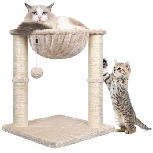 Cat Scratching Post, 50cm Cat Tree with Cat Hammock Bed, Scratching Posts for Indoor Cats with Hanging Ball Toy, Small Cat Tree for Kitten Pets Playing and Relaxing, Beige