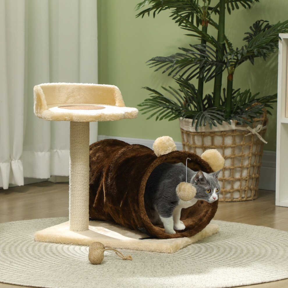 PawHut Cat Tree w/ Scratching Post, Bed, Cat Tunnel, Toy Ball, Dark Brown