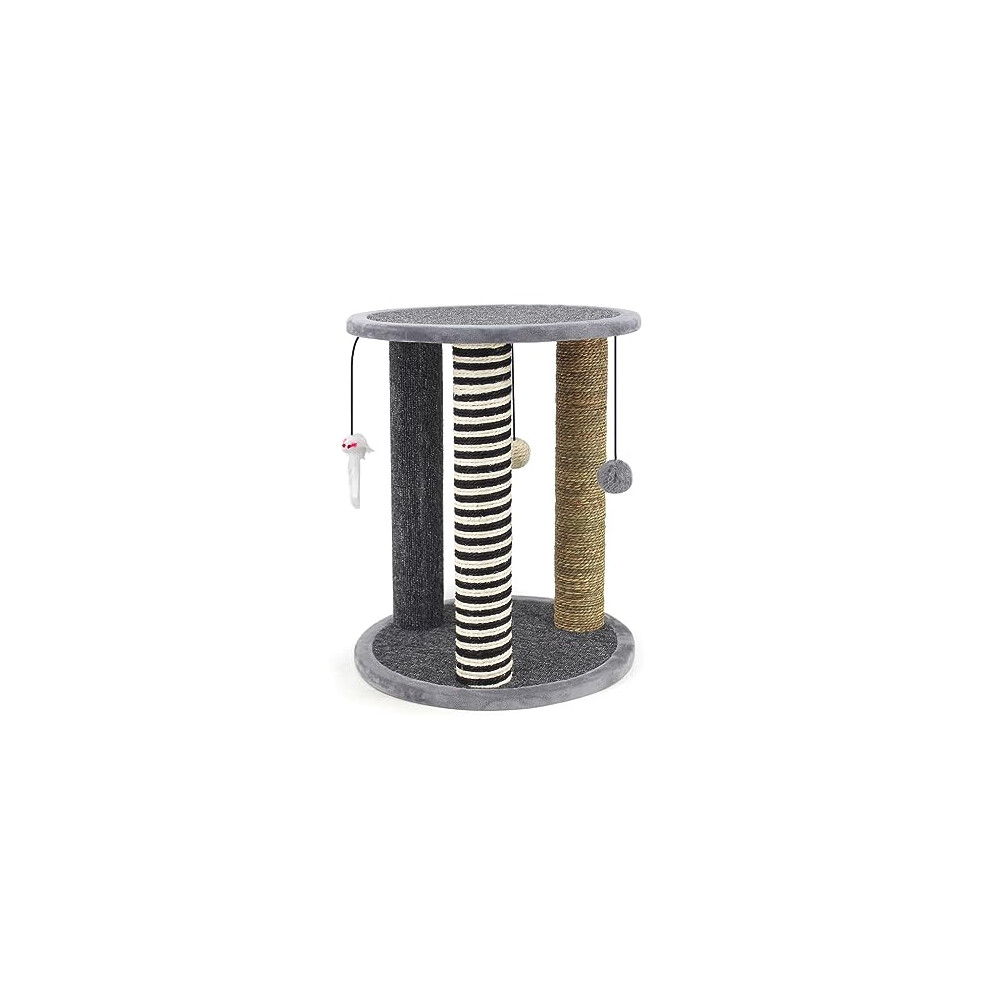 - Cat Scratching Post Small Cat Activity Center Kitty Climbing Tree with sisal Kitten Play Tower with Hanging Toys, Grey, 25 * 25 * 35cm