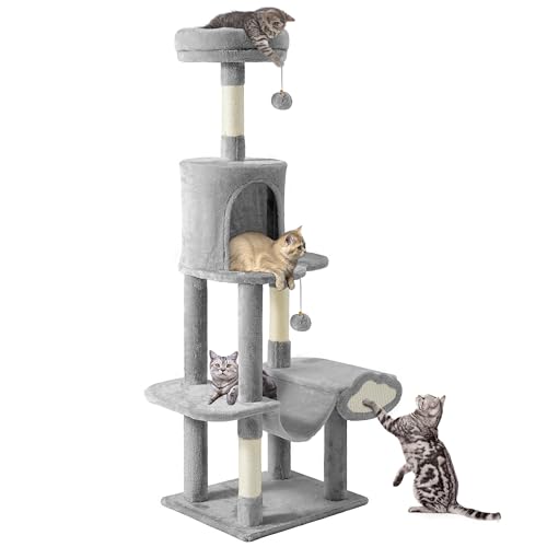 YouseaHome Cat Tree Scratching Post Activity Centre Cats Climbing Tower 140cm with Heavy Duty Sisal Cozy Condo for Indoor Play and Rest Grey