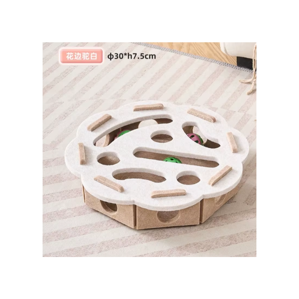 FitRepa Cat Scratching Post Multifunctional Cat Scratch Post - with Solid Wooden Base, Interactive Track & Spring Feather Toy, Scratching Posts For Indoor Cats (46cm Tall)