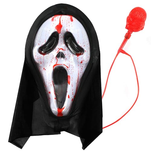 Ganbaro Halloween Scream Mask, Ghost Face Mask with Blood Pump, Adult, Suitable for Halloween, Carnival, Masquerade, Role Playing