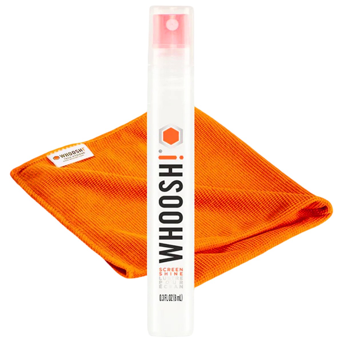 WHOOSH Pocket Screen Cleaning Kit 8 ml + Antimicrobial Cloth, Transparent