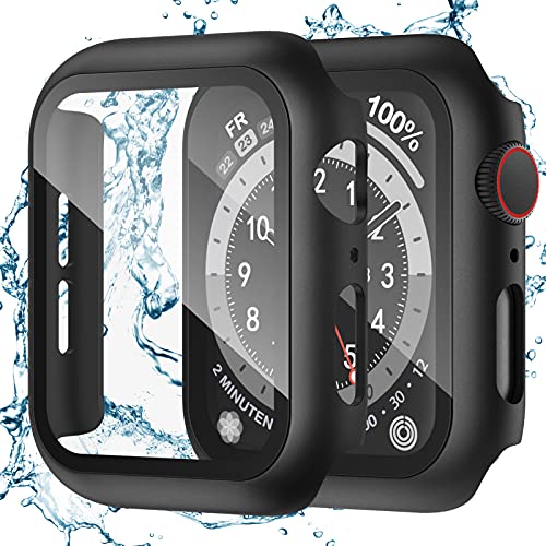 Adepoy 2 Pack Waterproof Apple Watch Screen Protector 40mm, Hard Protective Cases Guard Bumper Ultra Thin Full Coverage Compatible for iWatch SE 6 5 4 40mm