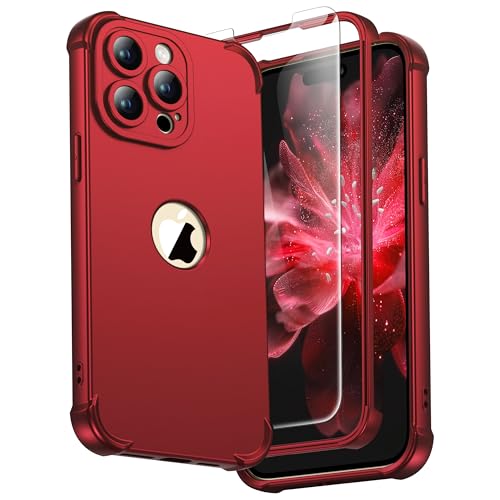 ORETECH for iPhone 14 Pro Max Case 6.7 inch, with [2 Pack Screen Protector] [Camera Lens Guard] [15FT Military Grade Drop Test] 360° Shockproof Slim Fit Design Rubber Bumper Phone Cover - Red