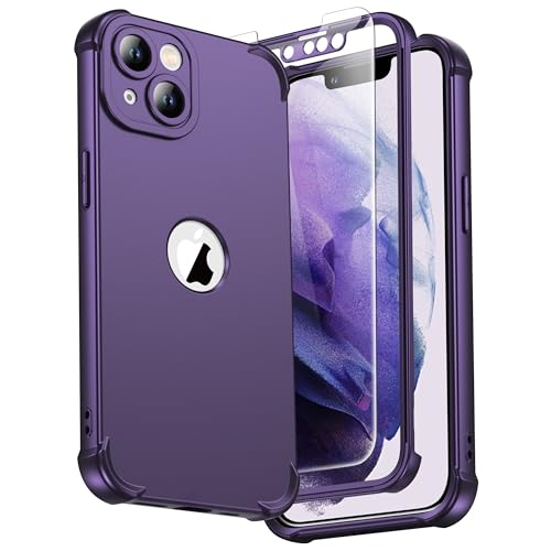 ORETECH for iPhone 13 Case, with [2 Pack Tempered Glass Screen Protector] [Camera Lens Guard] [15FT Military Grade Drop Test] 360° Shockproof Slim Fit Rubber Bumper Phone Cover - Dark Purple