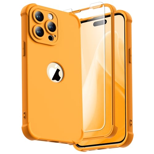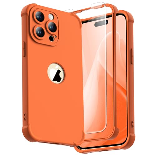 ORETECH for iPhone 14 Pro Max Case 6.7 inch, with [2 Pack Screen Protector] [Camera Lens Guard] [15FT Military Grade Drop Test] 360° Shockproof Slim Fit Design Rubber Bumper Phone Cover - Orange