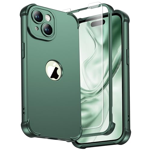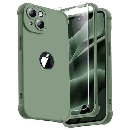 ORETECH for iPhone 15 Case 6.1 inch, with [2 Pack Screen Protector] [Camera Lens Guard] [15FT Military Grade Drop Test] 360° Shockproof Slim Fit Design Rubber Bumper Phone Cover - Green