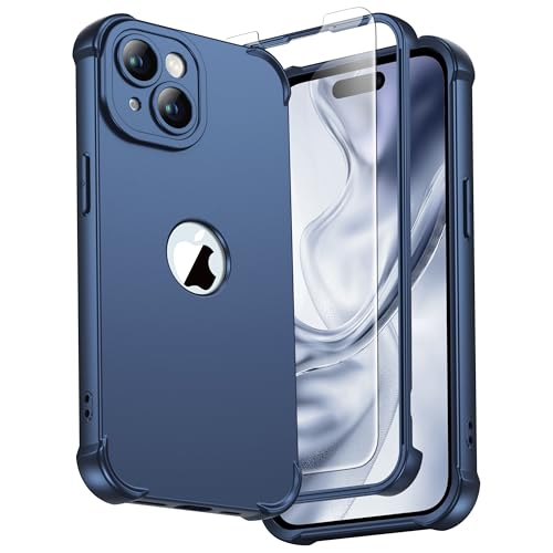 ORETECH for iPhone 15 Plus Case 6.7 inch, with [2 Pack Screen Protector] [Camera Lens Guard] [15FT Military Grade Drop Test] 360° Shockproof Slim Fit Design Rubber Bumper Phone Cover - Blue