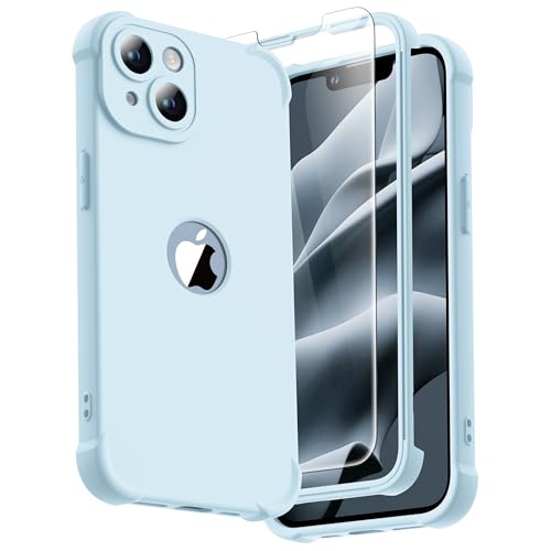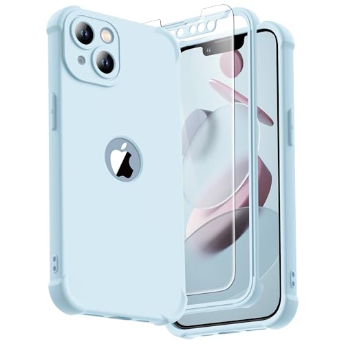 ORETECH for iPhone 13 Case, with [2 Pack Tempered Glass Screen Protector] [Camera Lens Guard] [15FT Military Grade Drop Test] 360° Shockproof Slim Fit Rubber Bumper Phone Cover - Baby Blue