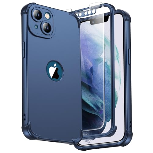 ORETECH for iPhone 13 Case, with [2 Pack Tempered Glass Screen Protector] [Camera Lens Guard] [15FT Military Grade Drop Test] 360° Shockproof Slim Fit Rubber Bumper Phone Cover - Blue