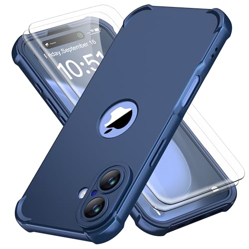 ORETECH for iPhone 16 Case 6.1 inch, with [2 Pack 9H Screen Protector] [Camera Lens Guard] [15FT Military Grade Drop Test] 360° Shockproof Slim Fit Design Rubber Bumper Phone Cover - Blue