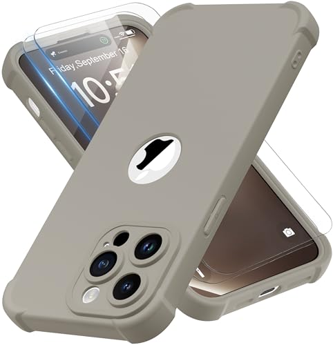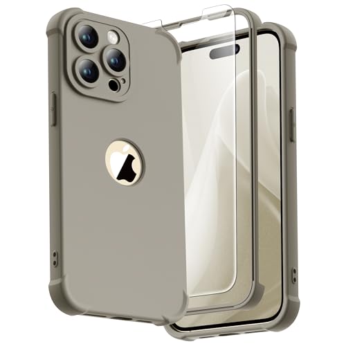 ORETECH for iPhone 14 Pro Max Case 6.7 inch, with [2 Pack Screen Protector] [Camera Lens Guard] [15FT Military Grade Drop Test] 360° Shockproof Slim Fit Design Rubber Bumper Phone Cover - Stone