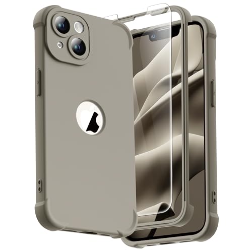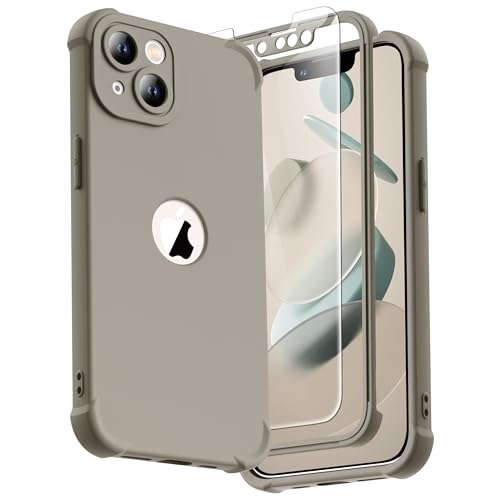 ORETECH for iPhone 13 Case, with [2 Pack Tempered Glass Screen Protector] [Camera Lens Guard] [15FT Military Grade Drop Test] 360° Shockproof Slim Fit Rubber Bumper Phone Cover - Stone